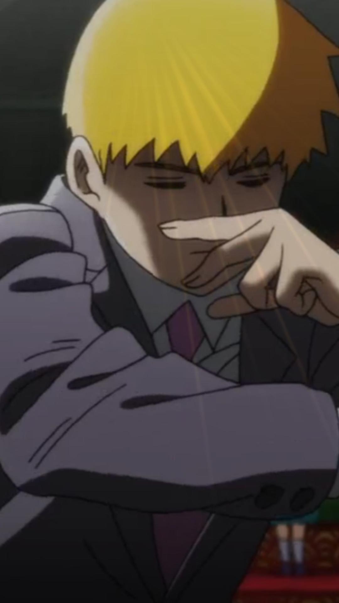 Fans appreciate wallpapers featuring Arataka Reigen for their ability to convey both his confident demeanor and the subtle humor that defines his character. These images serve as a perfect aesthetic choice for those who enjoy backgrounds that combine character depth with a lively, animated visual style, making them ideal for enhancing any digital space.
